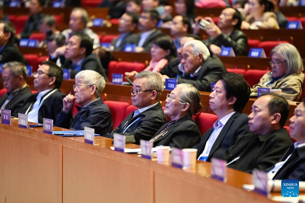 Participants listen to a keynote speech during the 4th Congress of Chinese Archaeology in Xi'an, northwest China's Shaanxi Province, Oct. 23, 2023. Over 800 archaeologists attended the 4th Congress of Chinese Archaeology that kicked off here on Monday. (Xinhua/Li Yibo)