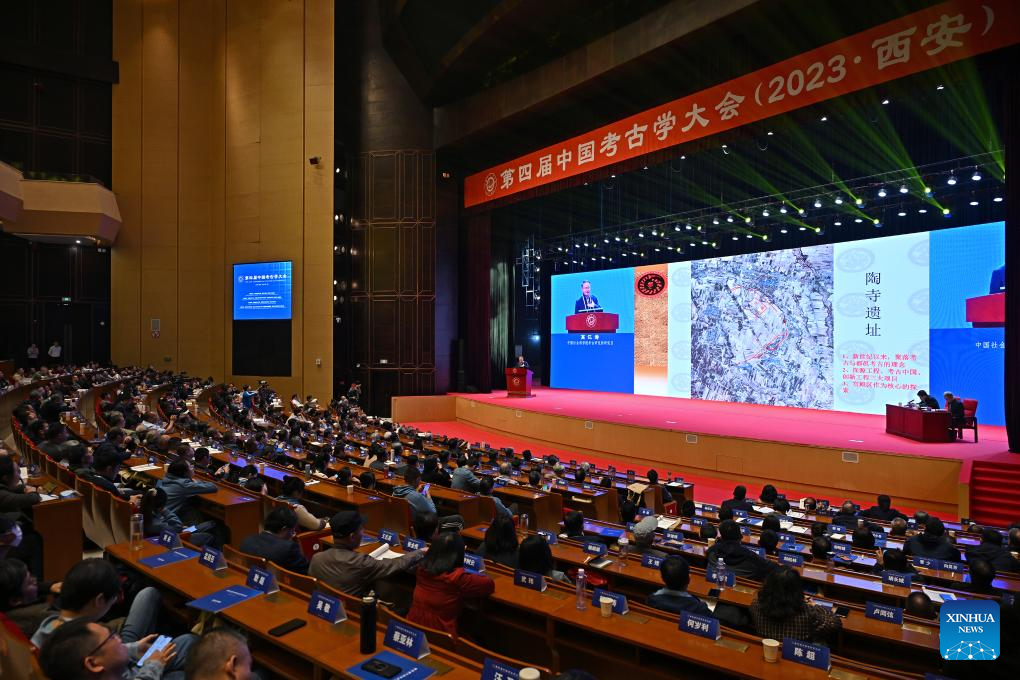 The opening ceremony of the 4th Congress of Chinese Archaeology is held in Xi'an, northwest China's Shaanxi Province, Oct. 23, 2023. Over 800 archaeologists attended the 4th Congress of Chinese Archaeology that kicked off here on Monday. (Xinhua/Li Xin)