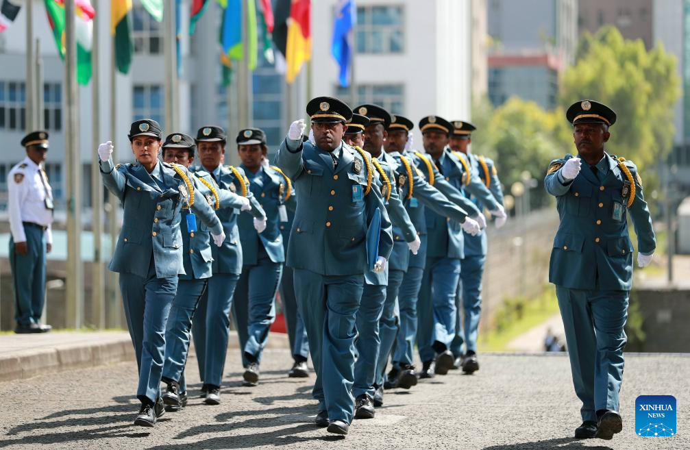 Security guards of the UN Economic Commission for Africa (UNECA) participate in an event marking the UN Day in Addis Ababa, Ethiopia, on Oct. 24, 2023. (Xinhua/Wang Ping)