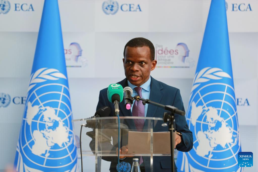 Acting Executive Secretary of the UN Economic Commission for Africa (UNECA) Antonio Pedro speaks at an event marking the UN Day in Addis Ababa, Ethiopia, on Oct. 24, 2023. (Xinhua/Wang Ping)