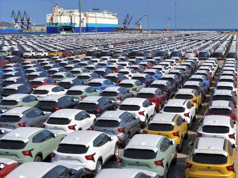 Domestically produced vehicles are parked at the Yantai port, east China's Shandong province, before being exported. (People's Daily Online/Tang Ke)