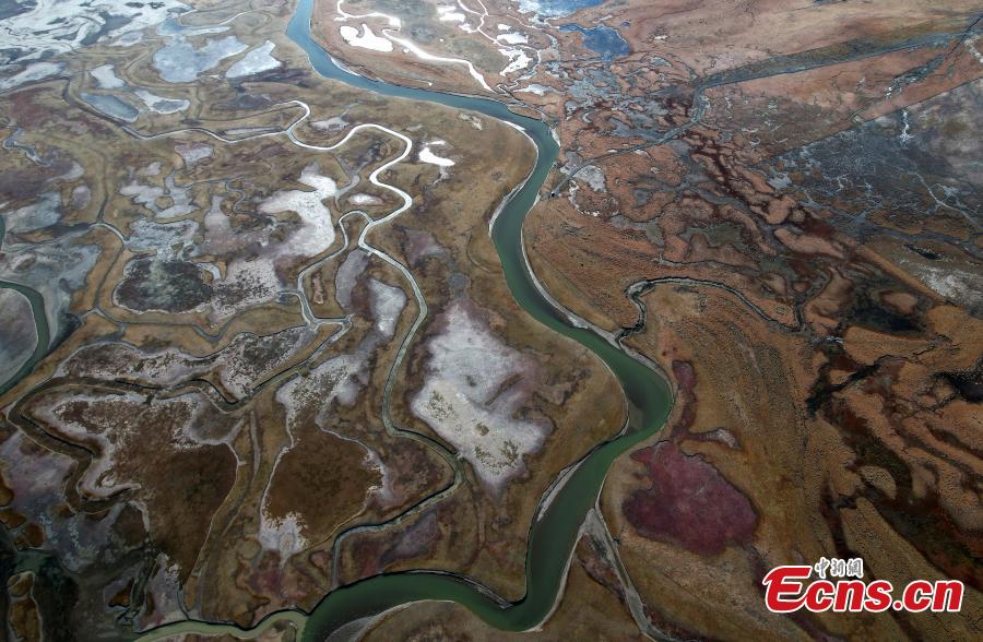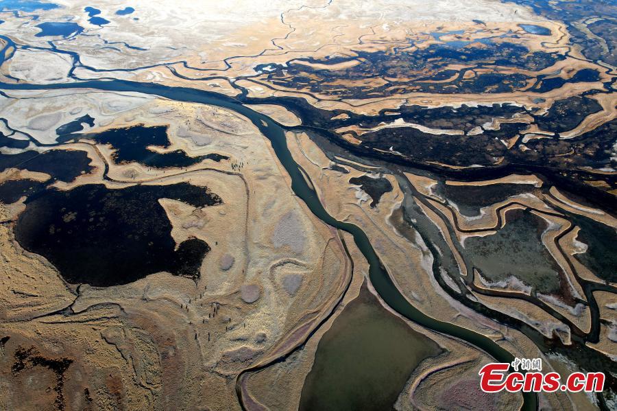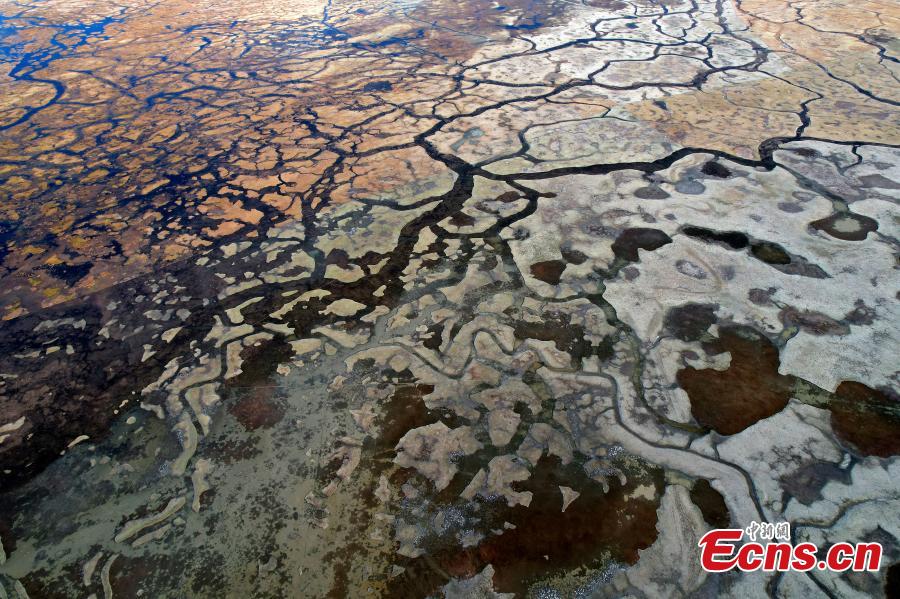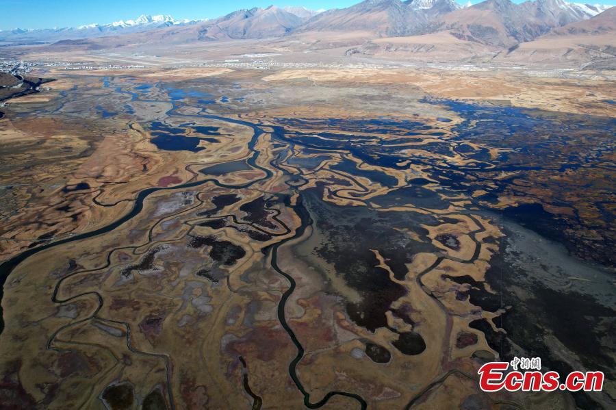 A plateau meadow wetland showcases a vibrant landscape in Autumn in Damxung County of Lhasa, southwest China's Tibet Autonomous Region, Oct. 24, 2023. (Photo: China News Service/Li Lin)