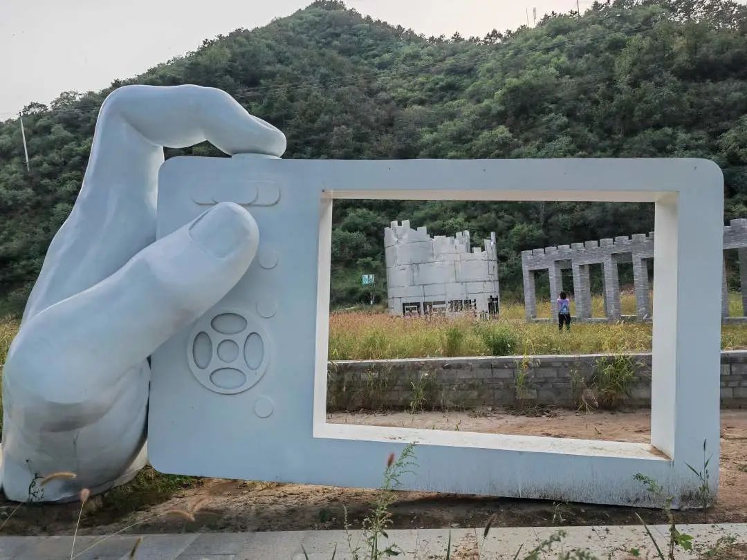 Photo shows a photography-themed statue in Hualougou village, which is nestled at the foot of the Jinshanling section of the Great Wall in Luanping county, Chengde city, north China's Hebei Province. (Photo by Yin Shuo/People's Daily)