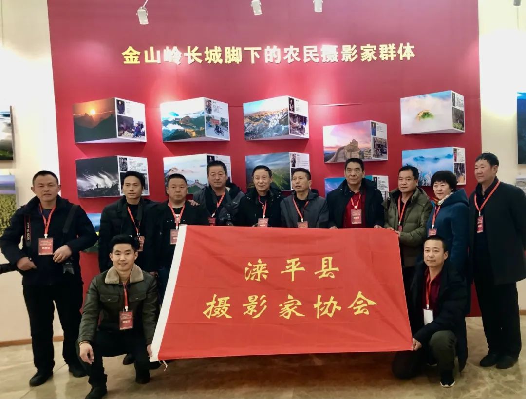 Villagers of Hualougou village pose for a group photo at a photo exhibition held in Beijing. Photos they took of the Jinshanling section of the Great Wall were displayed at the exhibition. (Photo courtesy of Zhou Baoquan)