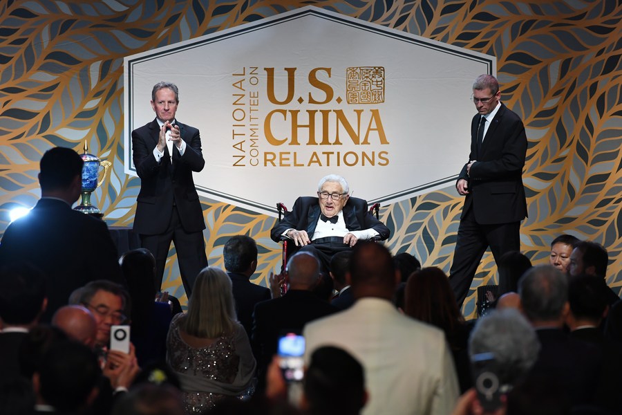 Former U.S. Secretary of State Dr. Henry A. Kissinger (C) attends the annual Gala Dinner of the National Committee on U.S.-China Relations in New York, the United States, on Oct. 24, 2023. (Xinhua/Li Rui)