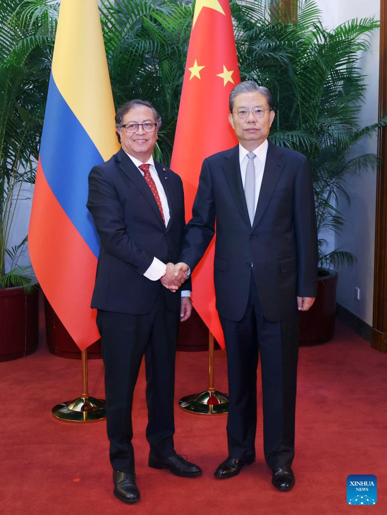 BEIJING, Oct. 25 (Xinhua) -- Zhao Leji, chairman of the National People's Congress (NPC) Standing Committee, met with President of the Republic of Colombia Gustavo Francisco Petro Urrego in Beijing on Wednesday.