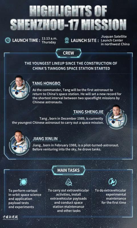 China on Thursday launched the Shenzhou-17 manned spaceship, and the three astronauts aboard will be sent to stay in orbit for about six months on a space station mission.