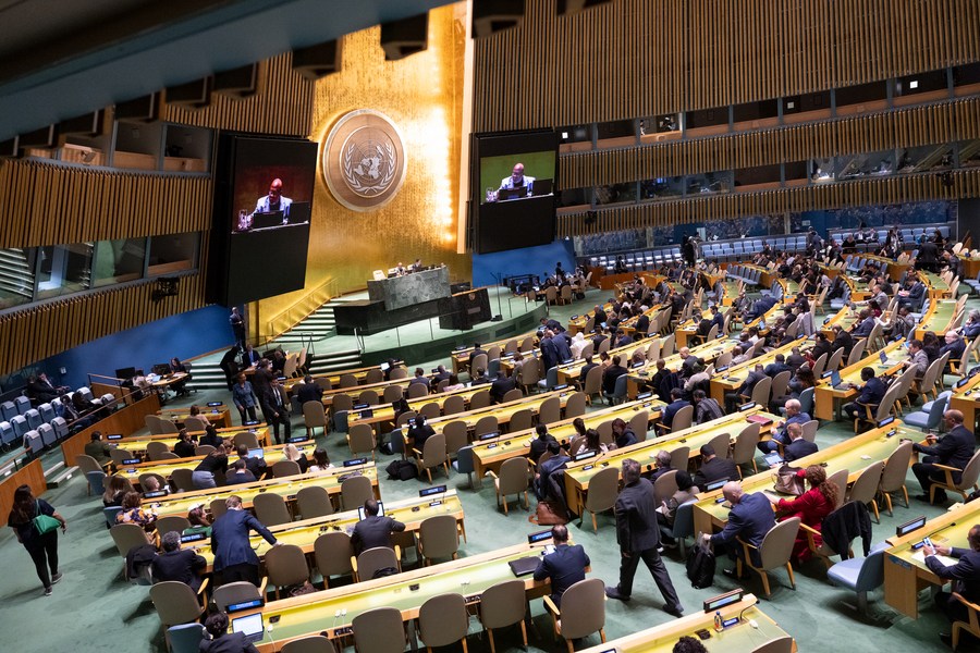 The 10th Emergency Special Session of the UN General Assembly on the Israeli-Palestinian conflict is held at the UN headquarters in New York, on Oct. 26, 2023. (Manuel Elias/UN Photo/Handout via Xinhua)