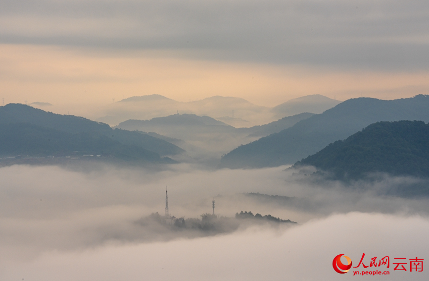 Photo shows a breathtaking autumn view of a sea of clouds in Pu'er mountain in Ning'er Hani and Yi Autonomous County, Pu'er city, southwest China's Yunnan Province. (Photo/Rao Xuesong)