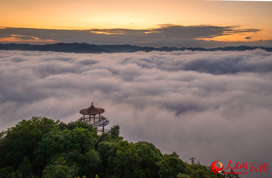 Photo shows a stunning autumn view of a sea of clouds in Pu'er mountain in Ning'er Hani and Yi Autonomous County, Pu'er city, southwest China's Yunnan Province. (Photo/Rao Xuesong)