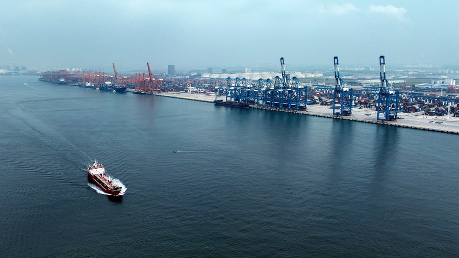 This aerial photo taken on Oct. 26, 2023 shows the Qinzhou Port in Qinzhou City, south China's Guangxi Zhuang Autonomous Region. (Xinhua/Zhang Ailin)