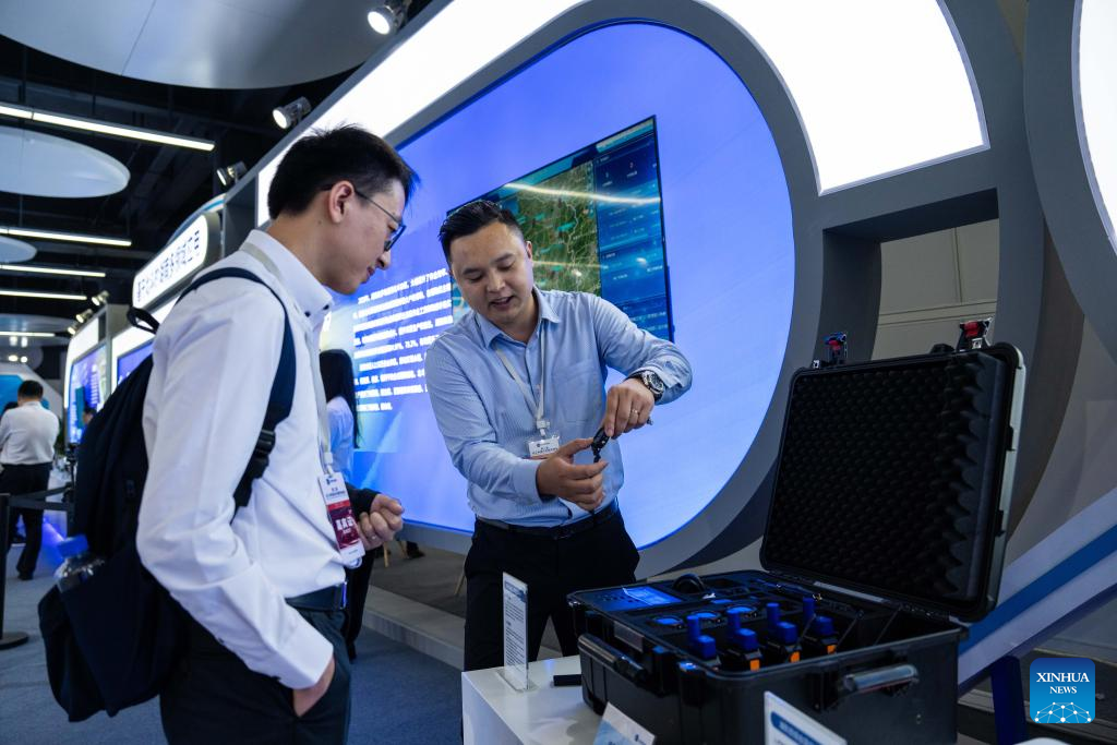 Visitors look at an exhibit during the second International Summit on BeiDou Navigation Satellite System (BDS) Applications in Zhuzhou, central China's Hunan Province, Oct. 26, 2023. (Xinhua/Chen Sihan)