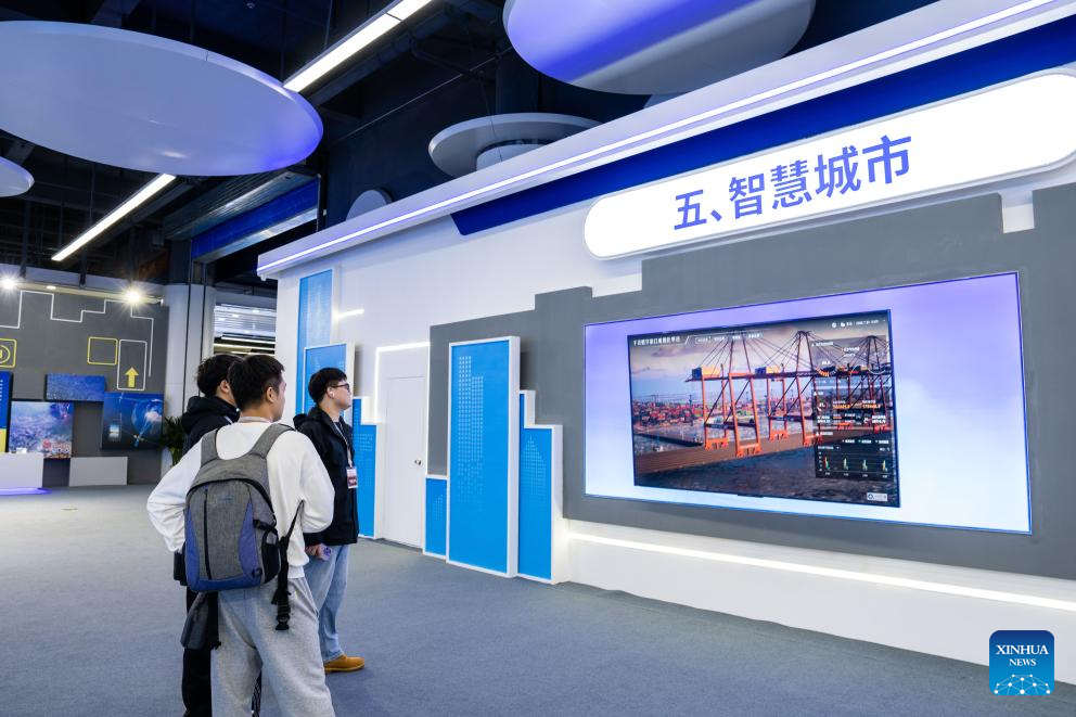 Visitors learn about the application of China's BeiDou Navigation Satellite System (BDS) on smart city during the second International Summit on BDS Applications in Zhuzhou, central China's Hunan Province, Oct. 26, 2023. (Xinhua/Chen Sihan)