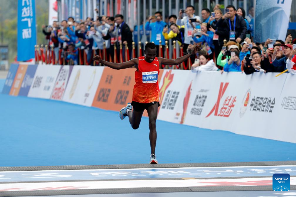 Felix Kiptoo Kirwa of Kenya competes during the 2023 Chengdu Marathon in Chengdu, southwest China's Sichuan Province, Oct. 29, 2023. (Xinhua/Shen Bohan)