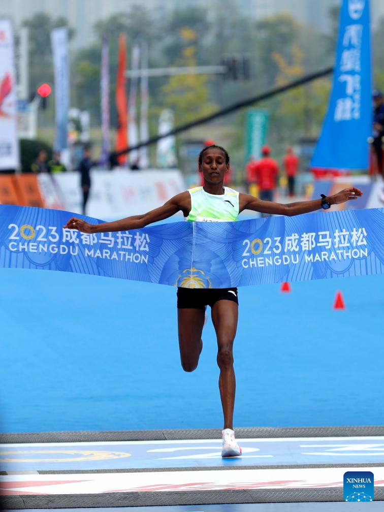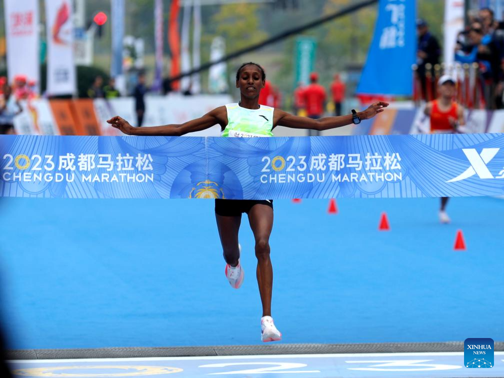 Gadisa Tajebe Urga of Ethiopia competes during the 2023 Chengdu Marathon in Chengdu, southwest China's Sichuan Province, Oct. 29, 2023. (Xinhua/Shen Bohan)