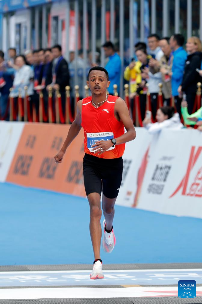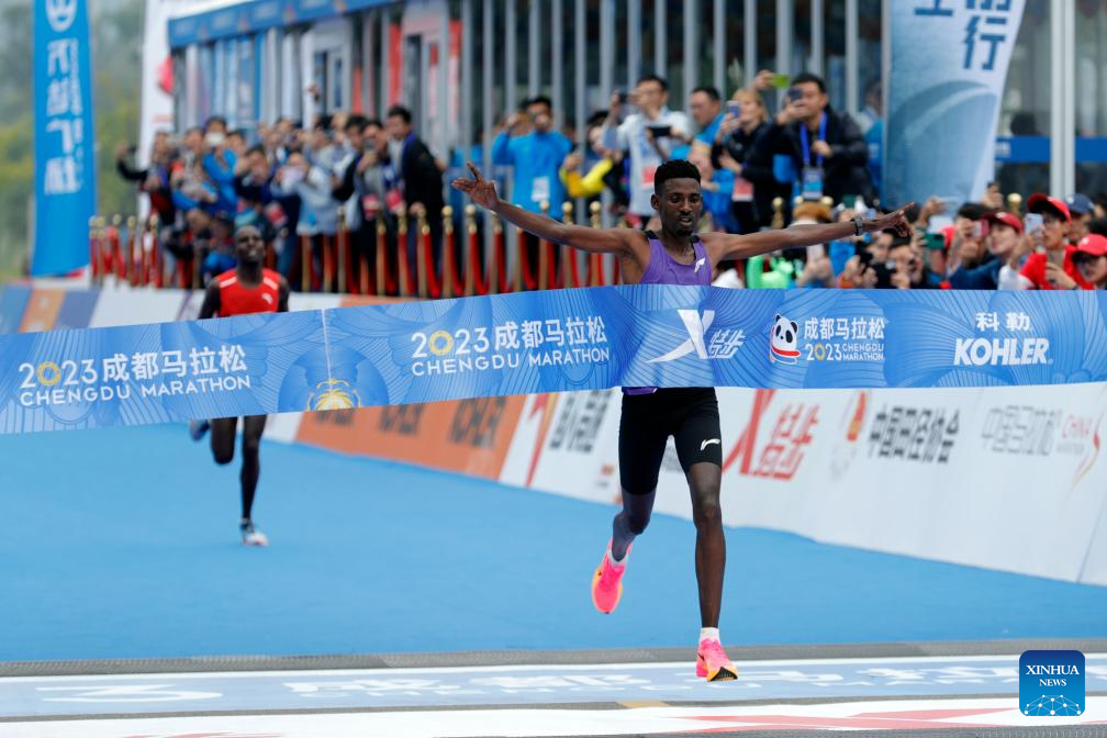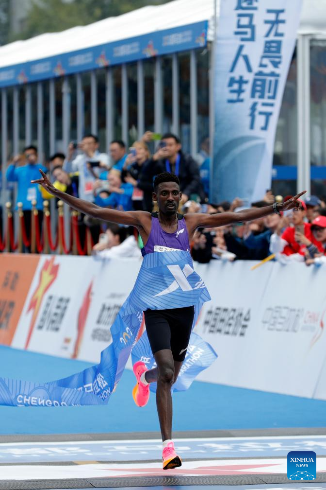 Gebre Mekuant Ayenew of Ethiopia competes during the 2023 Chengdu Marathon in Chengdu, southwest China's Sichuan Province, Oct. 29, 2023. (Xinhua/Shen Bohan)