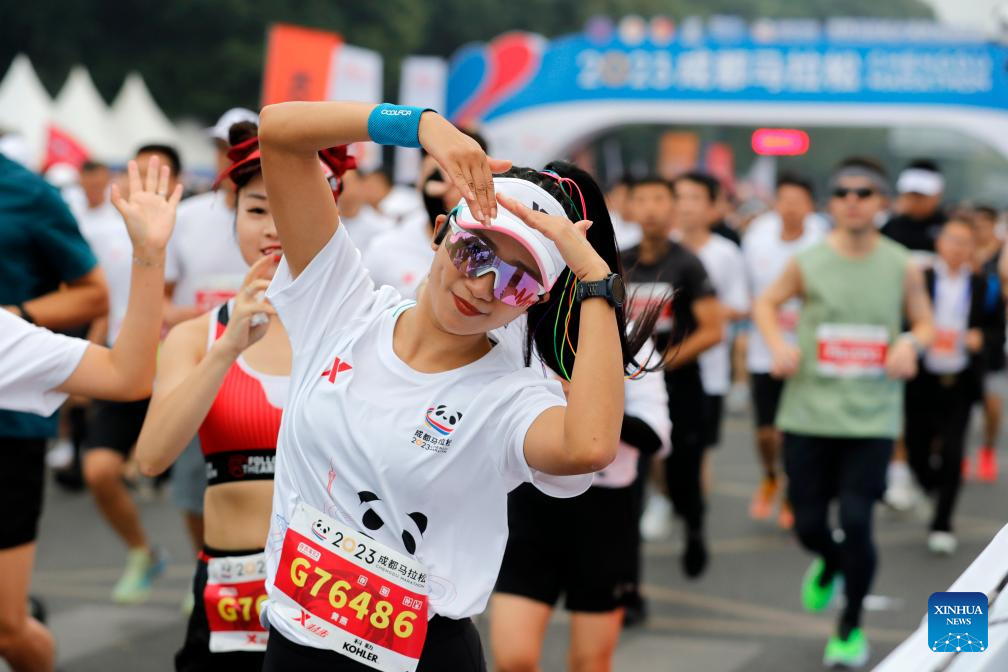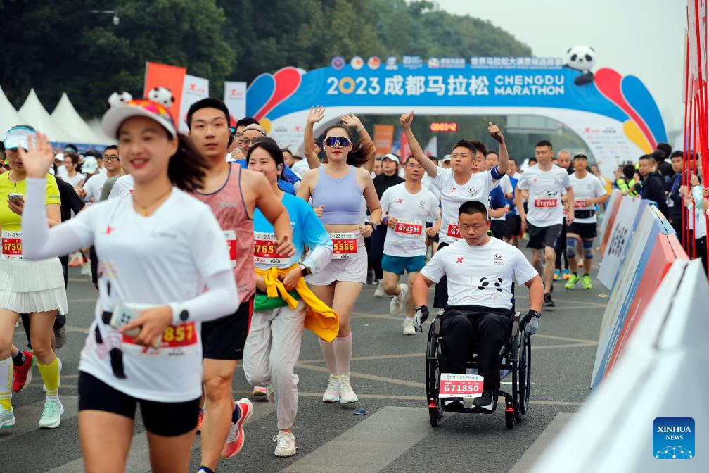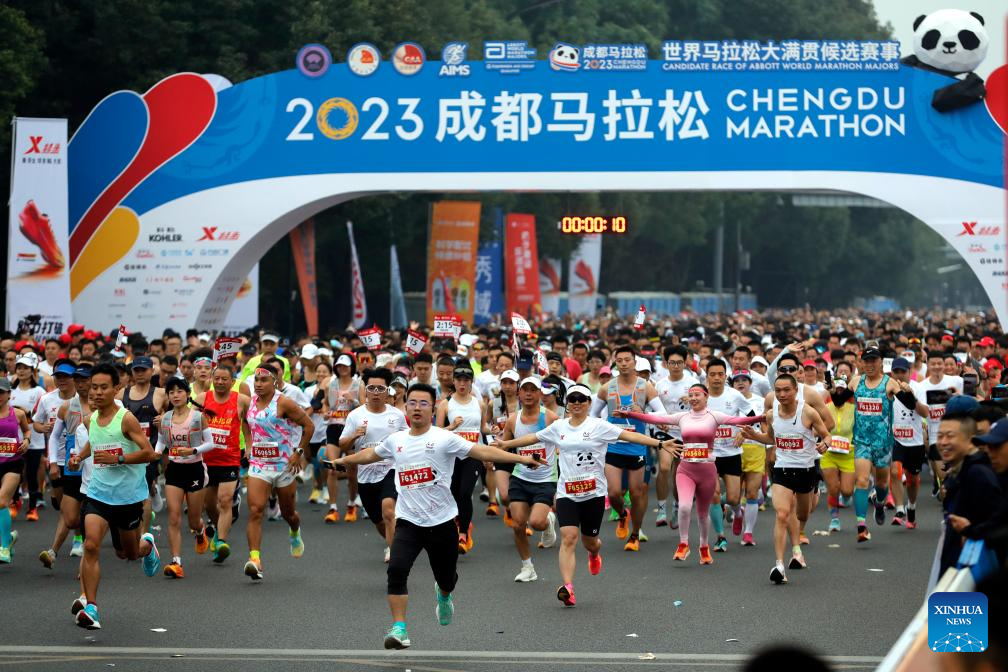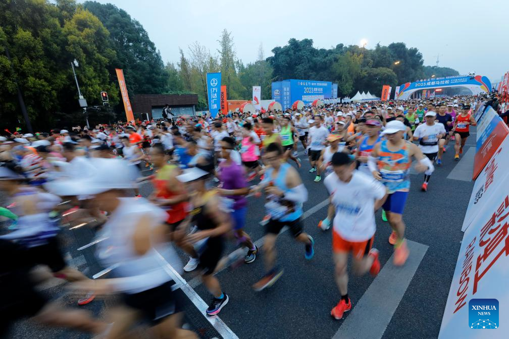 Runners compete during the 2023 Chengdu Marathon in Chengdu, southwest China's Sichuan Province, Oct. 29, 2023. (Xinhua/Shen Bohan)