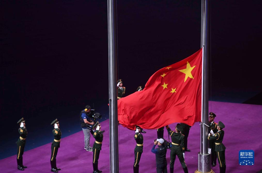 The national flag of the People's Republic of China is raised during the closing ceremony of the 4th Asian Para Games held at the Hangzhou Olympic Sports Center Stadium in Hangzhou, East China's Zhejiang province, Oct 28, 2023. [Photo/Xinhua]