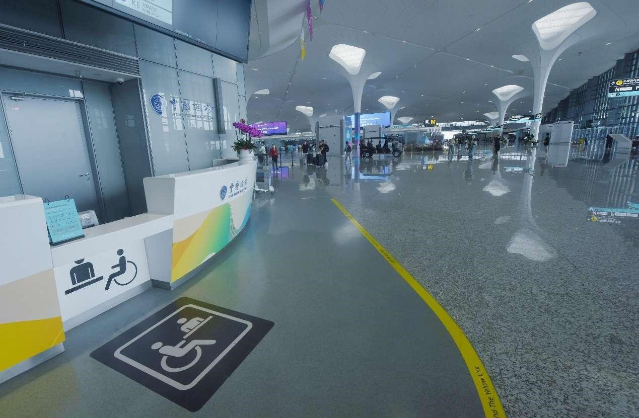 Photo shows a lowered service counter for passengers with disabilities at the T4 terminal of Hangzhou Xiaoshan International Airport. (People's Daily Online/Long Wei)