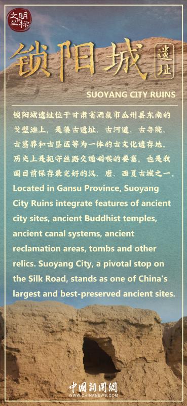 Located in Gansu Province, Suoyang City Ruins integrate features of ancient city sites, ancient Buddhist temples, ancient canal systems, ancient reclamation areas, tombs and other relics.