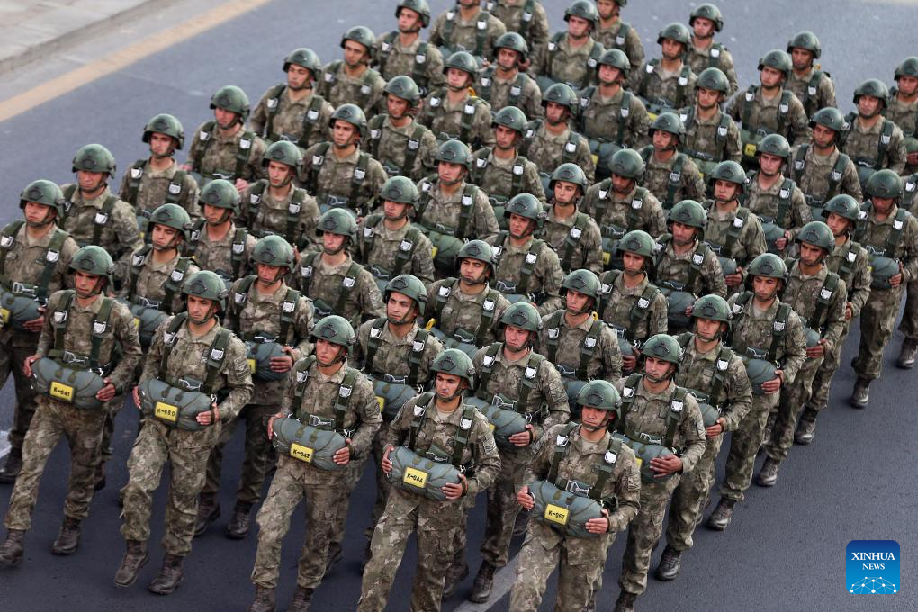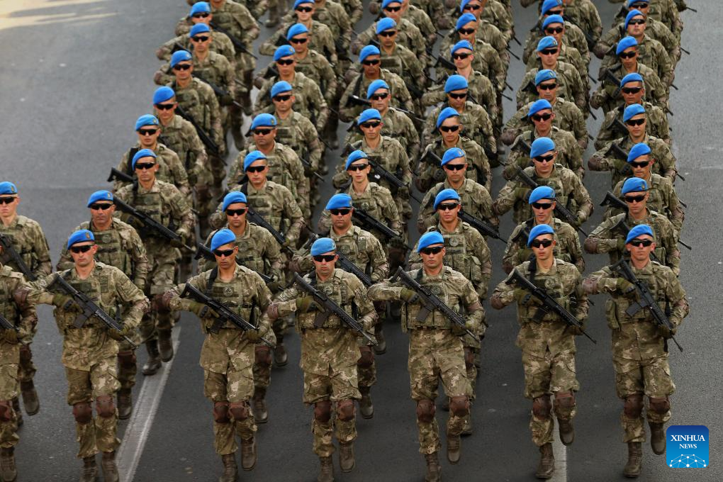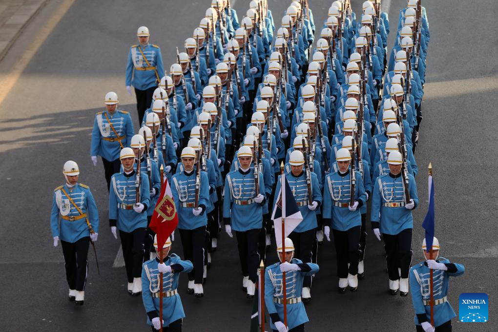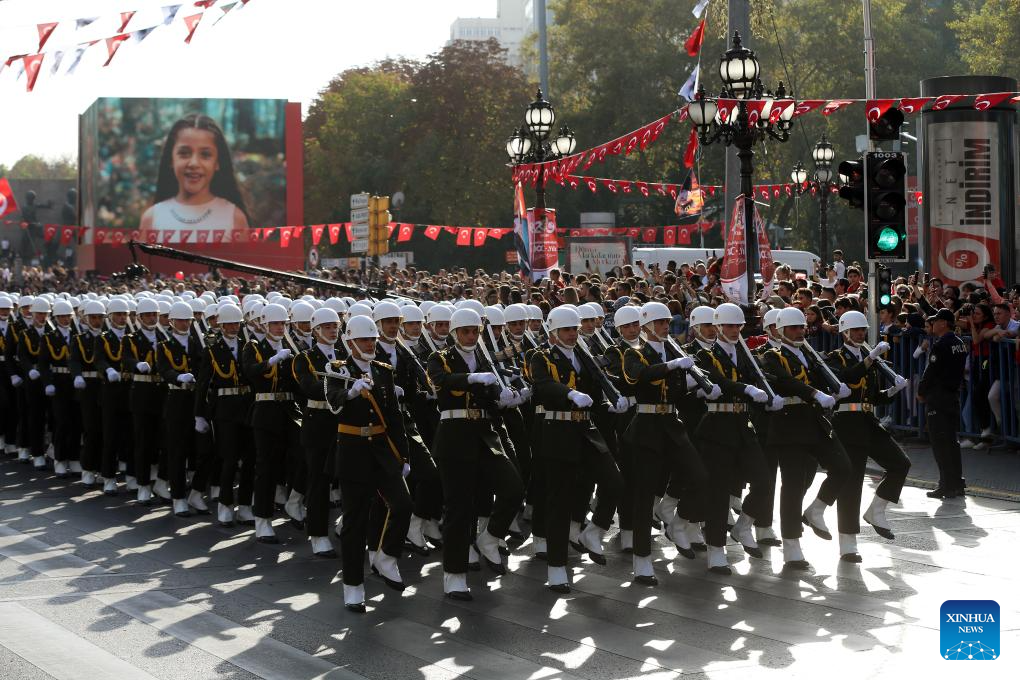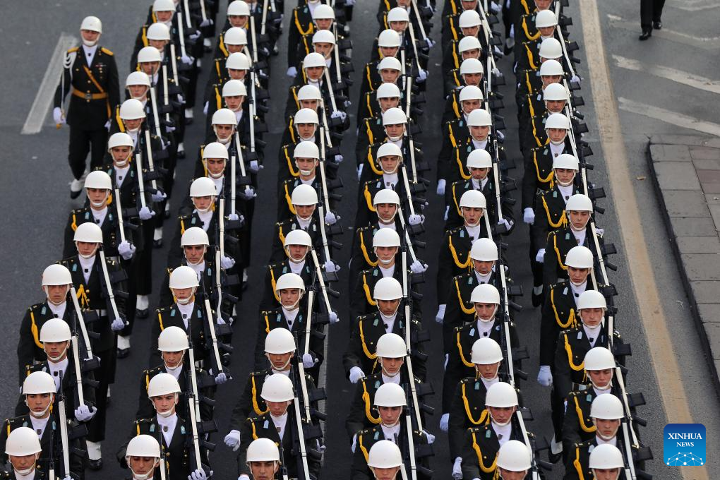 Soldiers march during celebrations marking the 100th anniversary of the establishment of the Republic of Trkiye in Ankara, Trkiye, Oct. 29, 2023. (Mustafa Kaya/Handout via Xinhua)