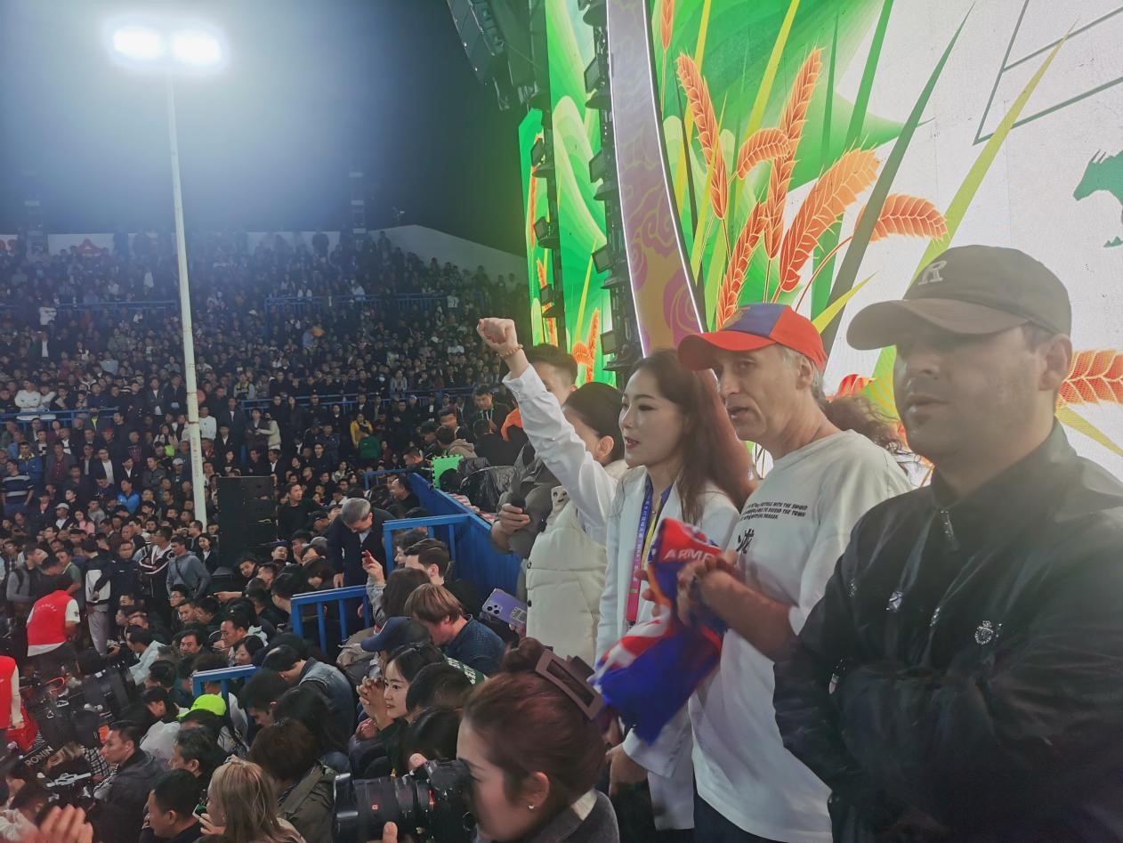 The street outside the basketball court buzzed with palpable enthusiasm for the game. Umatkul Bralkieva, business manager of the Slovo Kyrgyzstana newspaper, expressed her astonishment at the level of attention such a basketball game could garner in a small town. "I was deeply impressed by the atmosphere on the basketball court, and I wanted to cheer with them," she said.