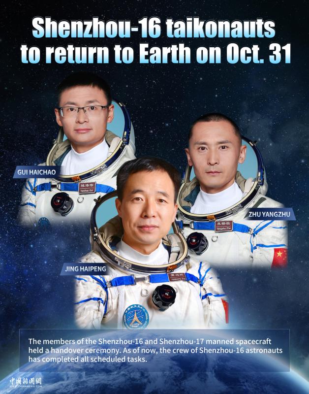 Shenzhou-16 taikonauts to return to Earth on Oct.31
