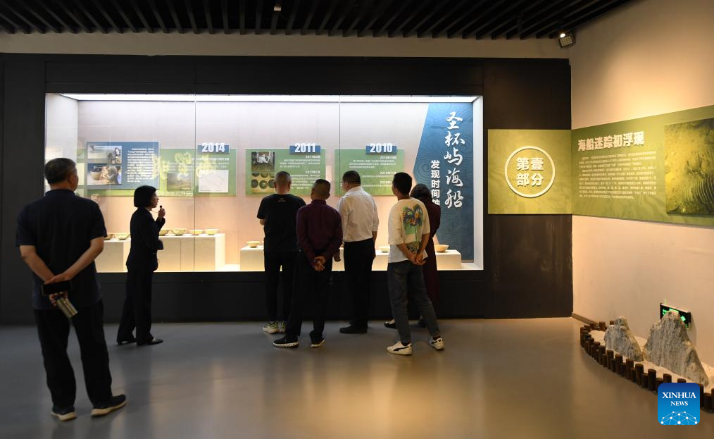 People learn about underwater archaeology at Longquan Museum in Longquan, east China's Zhejiang Province, Oct. 30, 2023. The 6th World Celadon Conference was held in Longquan City on Monday, along with a series of forums, exhibitions and skill competitions. (Xinhua/Weng Xinyang)