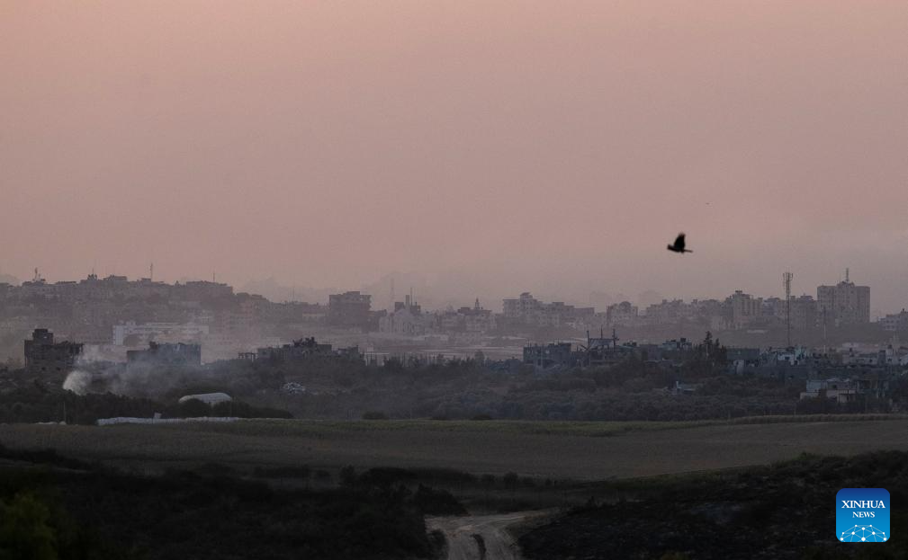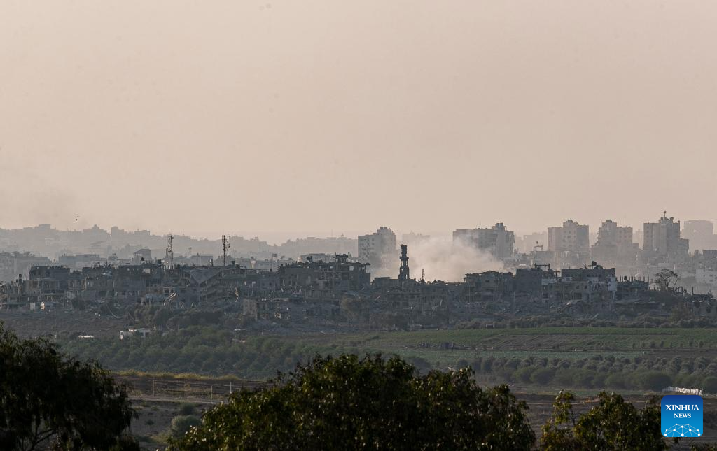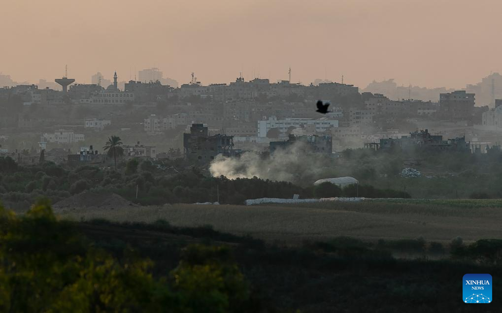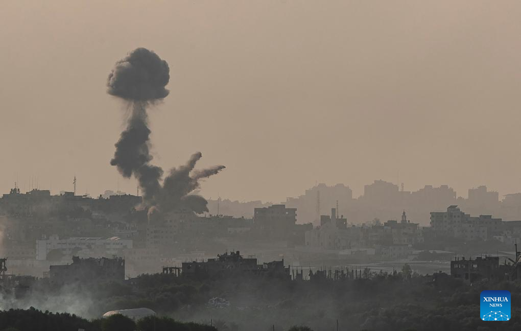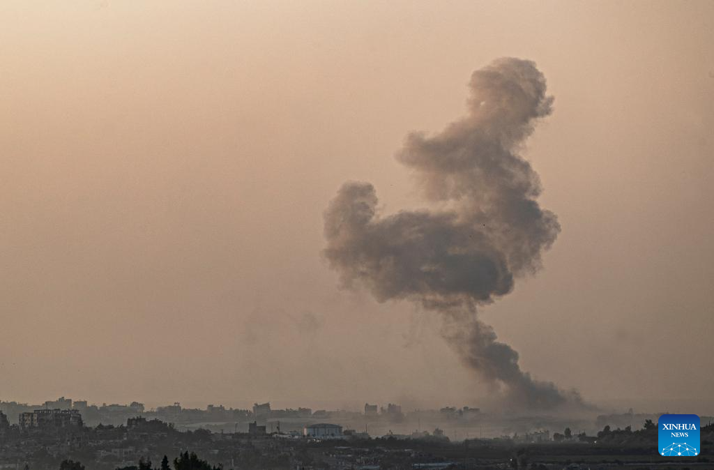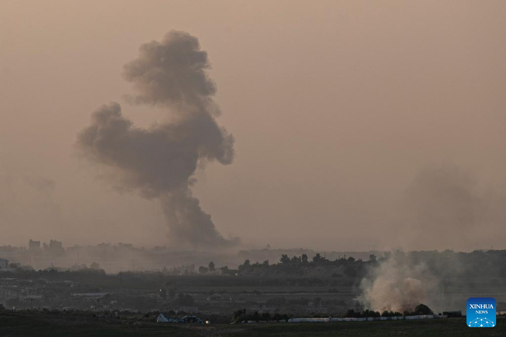 Smoke rises from the northern Gaza Strip after a strike by Israeli troops, as seen from Israel's border with Gaza on Oct. 30, 2023. The death toll of Palestinians from Israeli attacks on the Gaza Strip has risen to 8,382, according to the official Palestinian news agency of WAFA, while more than 1,400 people in Israel lost their lives, the vast majority in the Hamas attack on Oct. 7. (Xinhua/Chen Junqing)