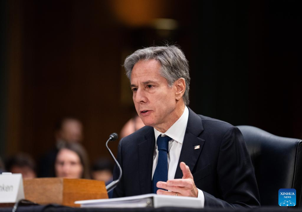 Blinken resumed his testimony each time one protester was evicted, only to be interrupted again by the ensuing protests. He said the funding, totaling 106 billion U.S. dollars, will support Israel and Ukraine in their respective conflicts with Hamas and Russia, ameliorate the catastrophic humanitarian crisis in Gaza, help Washington outcompete its strategic rivals, and strengthen the protection of Americans' security at home.