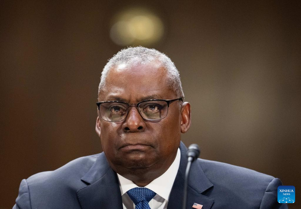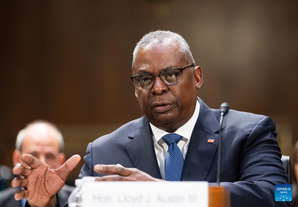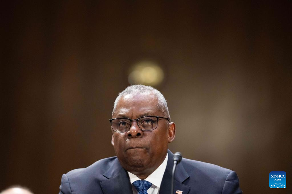 U.S. Secretary of Defense Lloyd Austin attends a hearing before the Senate Appropriations Committee in Washington, D.C., the United States, on Oct. 31, 2023. Multiple protesters demanding an immediate ceasefire in the Gaza Strip repeatedly interrupted a hearing held by the U.S. Senate on the Joe Biden administration's massive budget request for funding Israel and Ukraine in their respective conflicts. (Xinhua/Liu Jie)