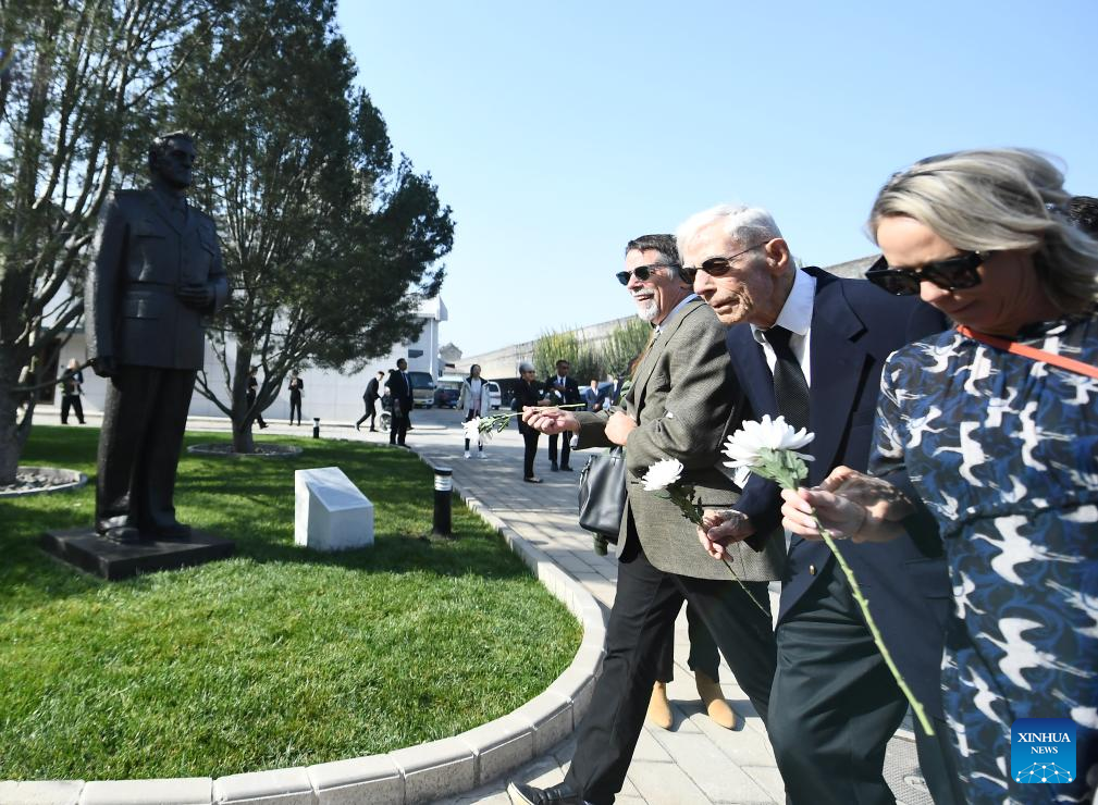 BEIJING, Oct. 31 (Xinhua) -- To the accompaniment of solemn music, two Flying Tigers veterans presented flower baskets to the statues of heroes who fought against Japanese aggression, then bowed deeply to express their reverence.