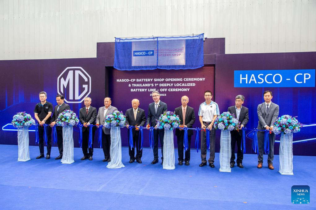 Zhao Feng, president of SAIC Motor-CP, a joint venture between SAIC Motor Corp and Charoen Pokphand Group, said they invested 500 million baht (around 13.9 million U.S. dollars) in the EV battery plant, and the plant showcases the company's vision as a pioneer and leader in electric vehicles in Thailand.