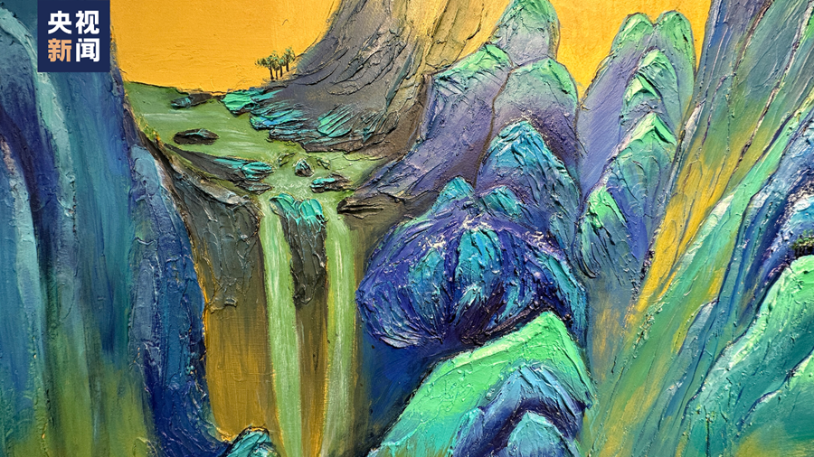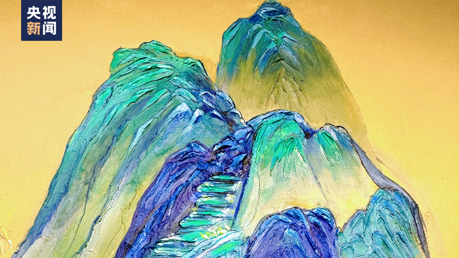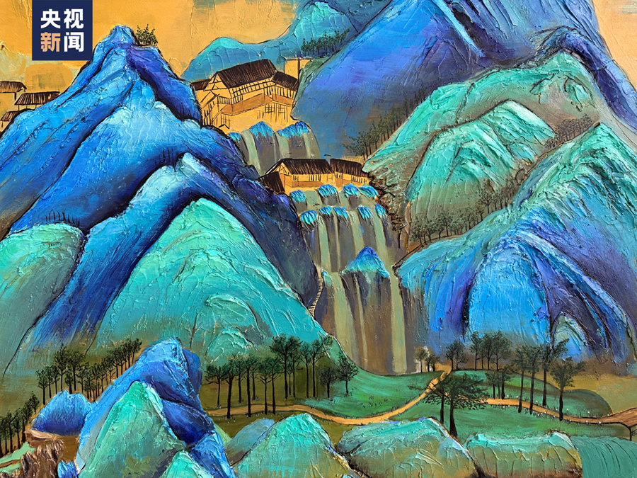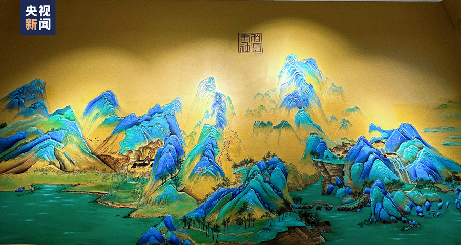 Photo shows a section of the artwork created by Duan and her students inspired by the Chinese masterpiece "A Thousand Miles of Rivers and Mountains." (Photo/cctvnewscenter)