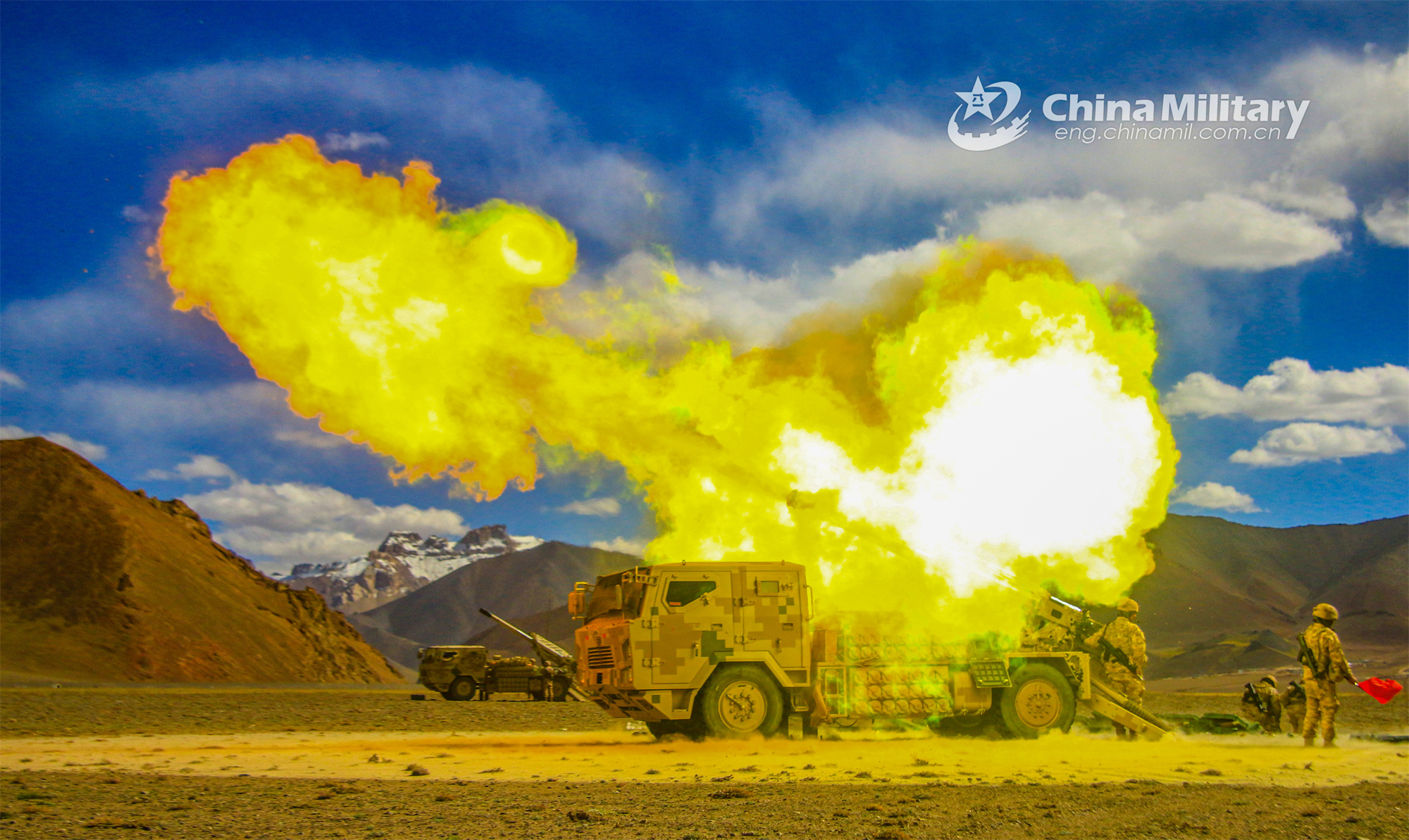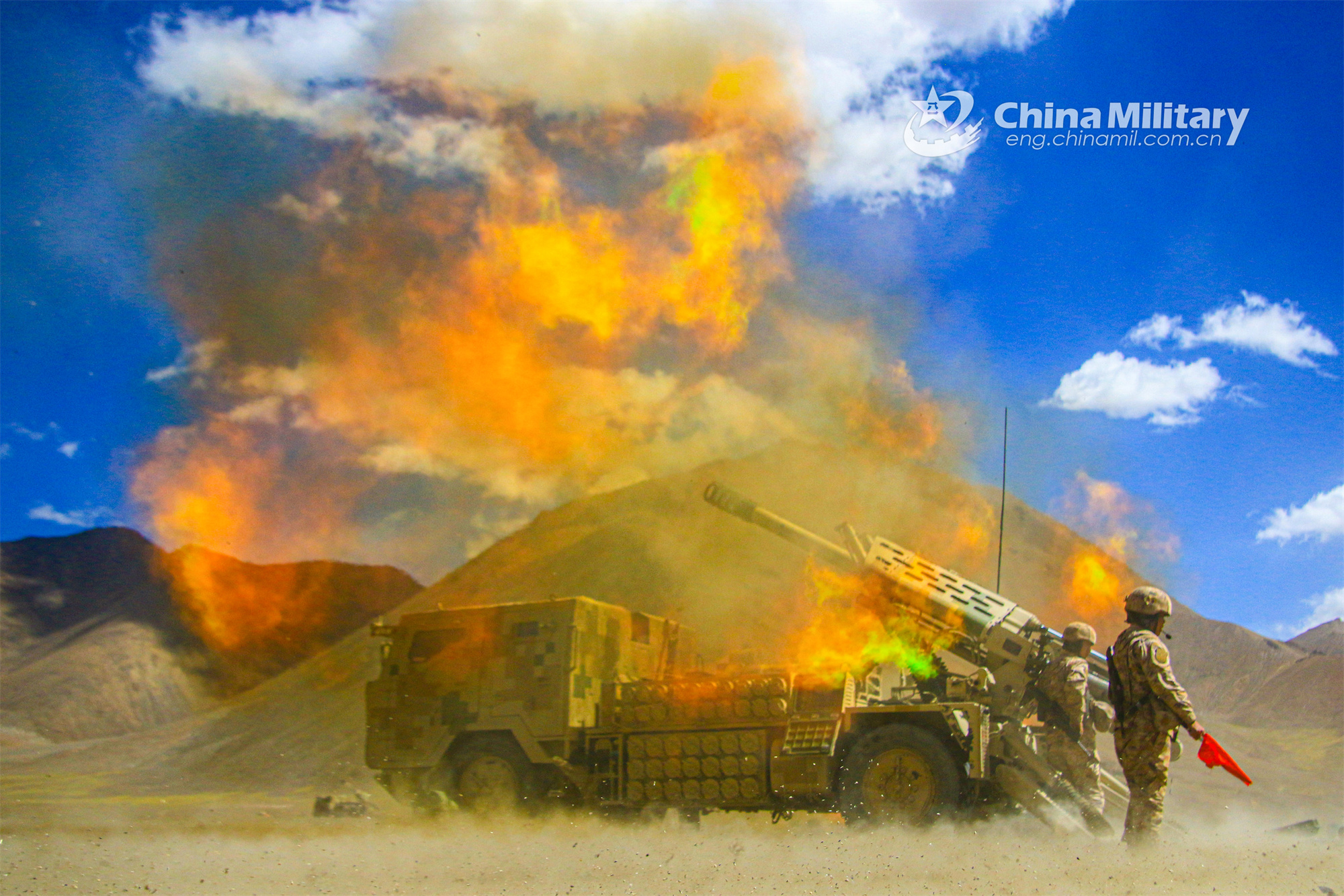 A vehicle-mounted howitzer attached to a Chinese PLA Army regiment takes the direct-fire assessment during a live-fire training exercise in mid October, 2023. (eng.chinamil.com.cn/Photo by Liu Jintao)