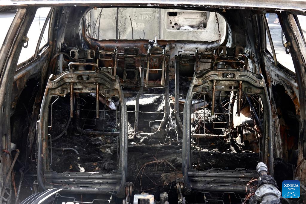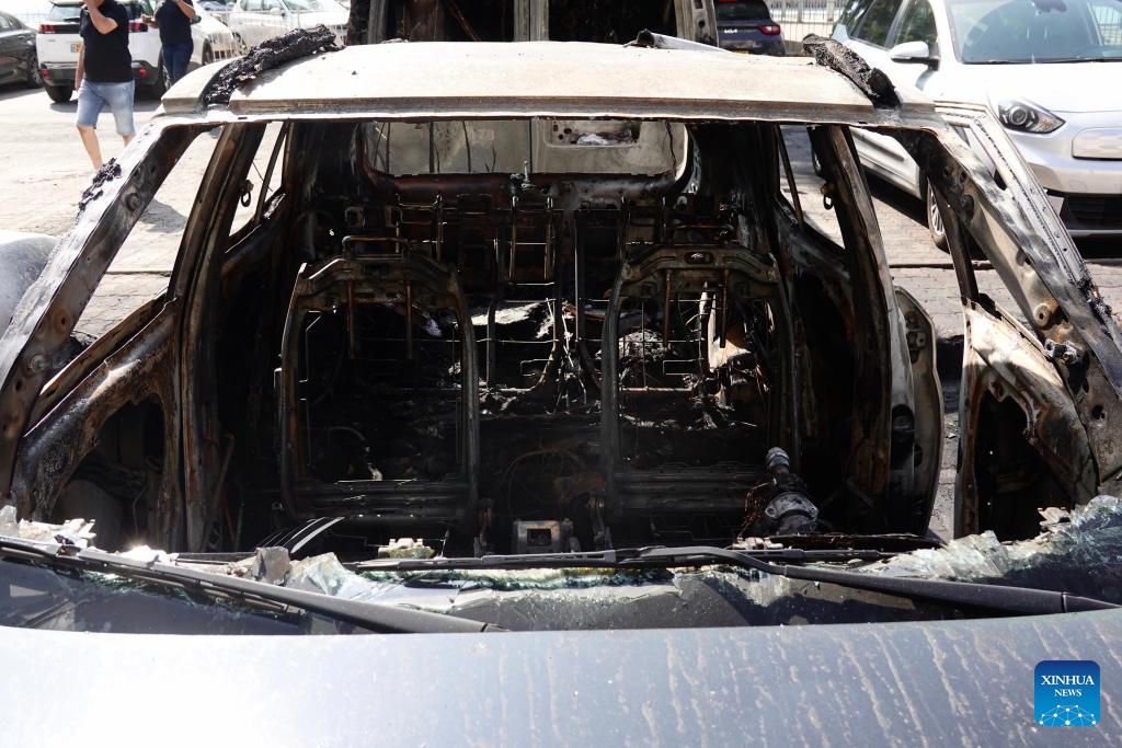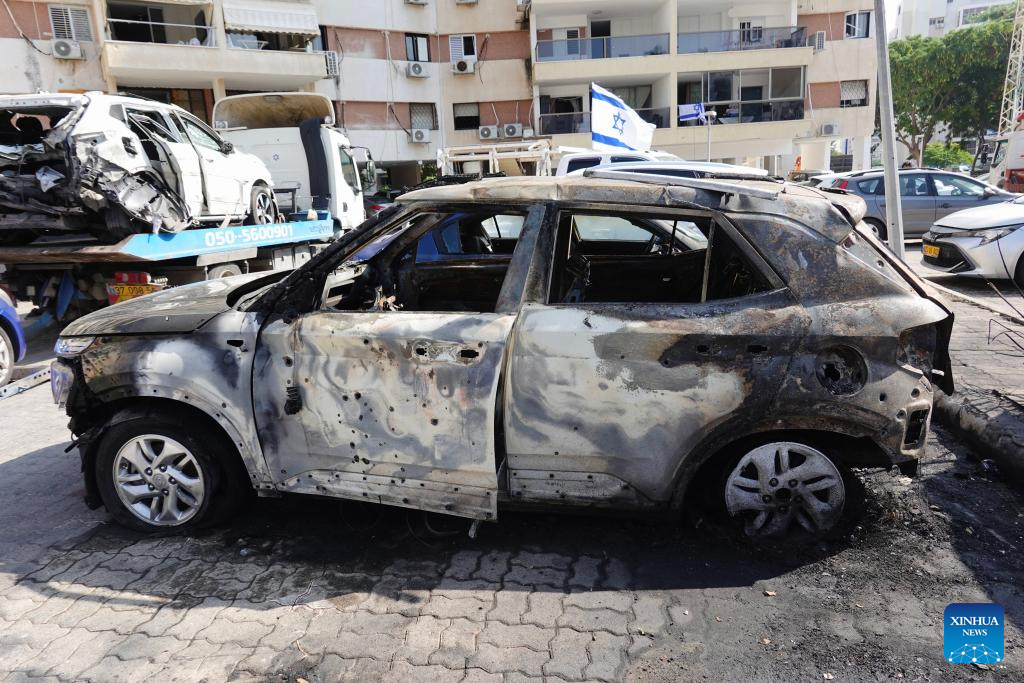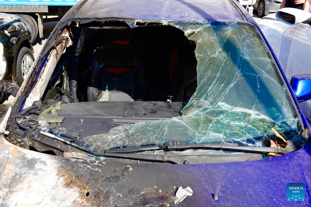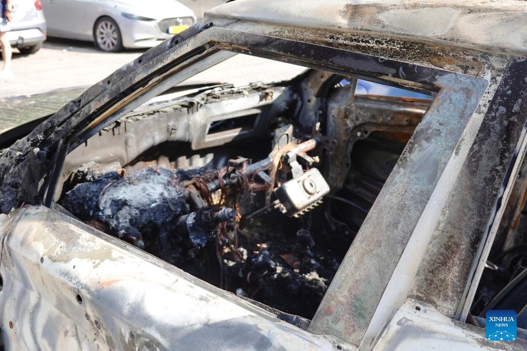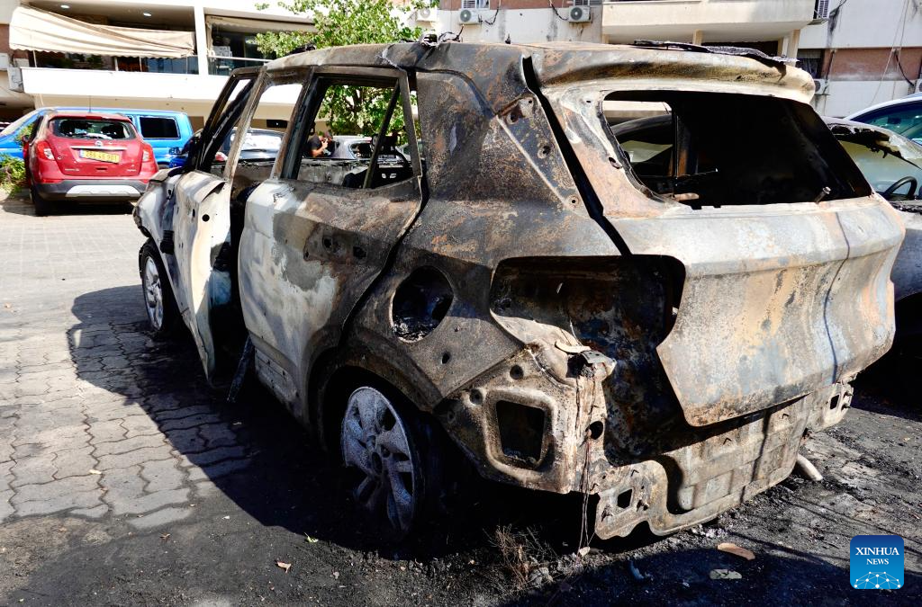 A vehicle is seen damaged in a rocket attack from Gaza on Oct. 31, in Ashdod, Israel, on Nov. 1, 2023. At least 8,525 Palestinians have been killed by Israeli strikes in Gaza since the beginning of the latest Israel-Hamas conflict starting from Oct. 7, according to the Gaza-based Health Ministry. Meanwhile, the Israeli military said the latest conflict has killed at least 1,400 people in Israel. (Xinhua/Wang Zhuolun)