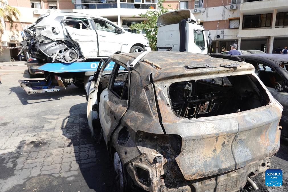Vehicles are seen damaged in a rocket attack from Gaza on Oct. 31, in Ashdod, Israel, on Nov. 1, 2023. At least 8,525 Palestinians have been killed by Israeli strikes in Gaza since the beginning of the latest Israel-Hamas conflict starting from Oct. 7, according to the Gaza-based Health Ministry. Meanwhile, the Israeli military said the latest conflict has killed at least 1,400 people in Israel. (Xinhua/Wang Zhuolun)
