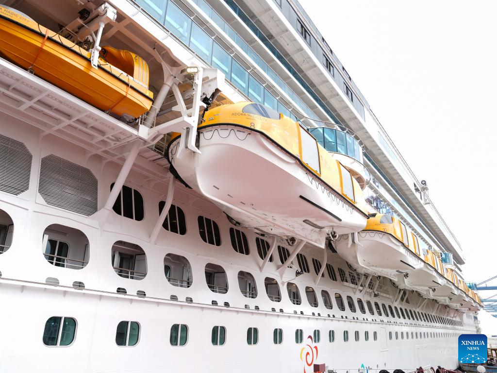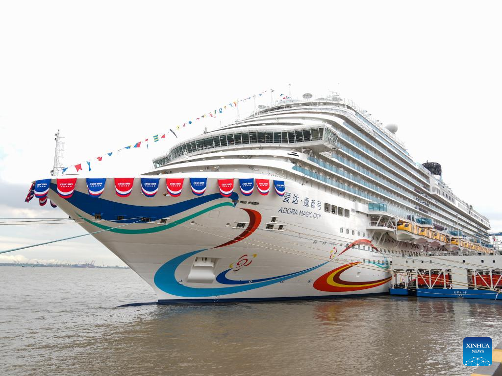 SHANGHAI, Nov. 4 (Xinhua) -- After five years of design, building and a subsequent trial voyage, China's first domestically-built large cruise ship, the "Adora Magic City," was delivered in Shanghai on Saturday, with its maiden voyage scheduled for Jan. 1, 2024.
