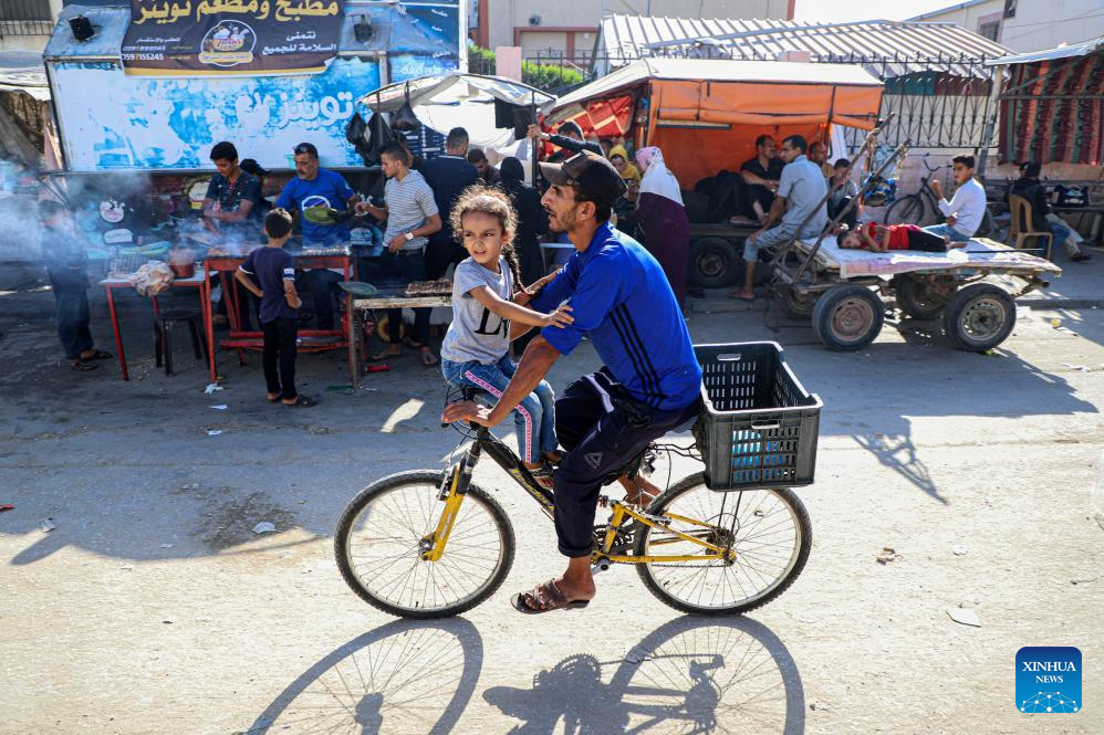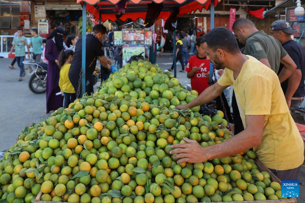 People are seen at a market in the southern Gaza Strip city of Khan Younis Nov. 4, 2023. (Photo by Rizek Abdeljawad/Xinhua)
