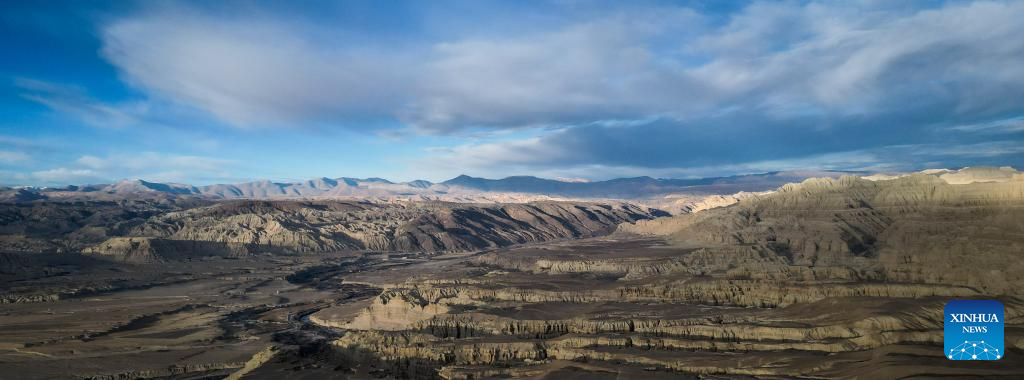 This photo taken on Nov. 2, 2023 shows the landscape of earth forest in Zanda County of Ngari Prefecture, southwest China's Tibet Autonomous Region. Zanda is famous for the unique landscape of earth forest. With gullies, ravines and steep mountainsides, the unique landscape was shaped as a result of gradual geological movements of the Himalayan region ever since the Quaternary Period from 2.5 million years ago and the impact of perennial water erosion and airslaking. (Xinhua/Nie Yi)