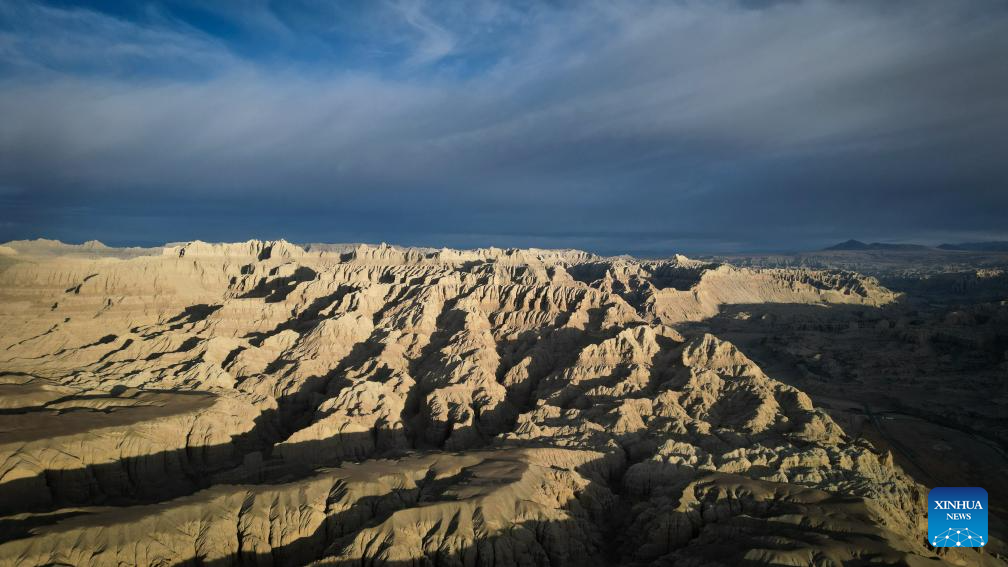 This photo taken on Nov. 2, 2023 shows the landscape of earth forest in Zanda County of Ngari Prefecture, southwest China's Tibet Autonomous Region. Zanda is famous for the unique landscape of earth forest. With gullies, ravines and steep mountainsides, the unique landscape was shaped as a result of gradual geological movements of the Himalayan region ever since the Quaternary Period from 2.5 million years ago and the impact of perennial water erosion and airslaking. (Xinhua/Chen Shangcai)