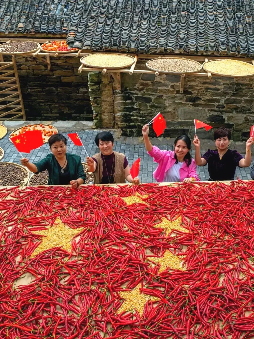 - Villagers sun-dry crops in Wuyuan, E China's Jiangxi
