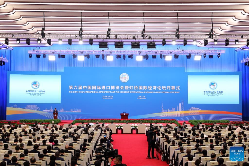 The opening ceremony of the sixth China International Import Expo (CIIE) and the Hongqiao International Economic Forum is held in east China's Shanghai, Nov. 5, 2023. (Xinhua/Jin Liwang)