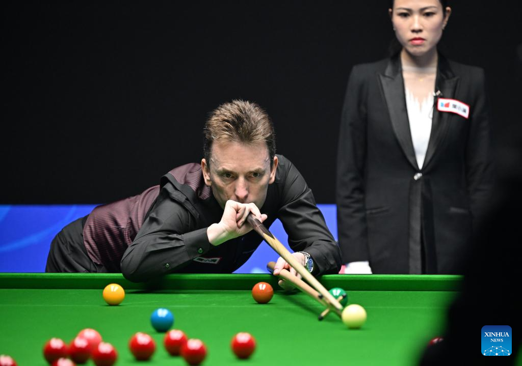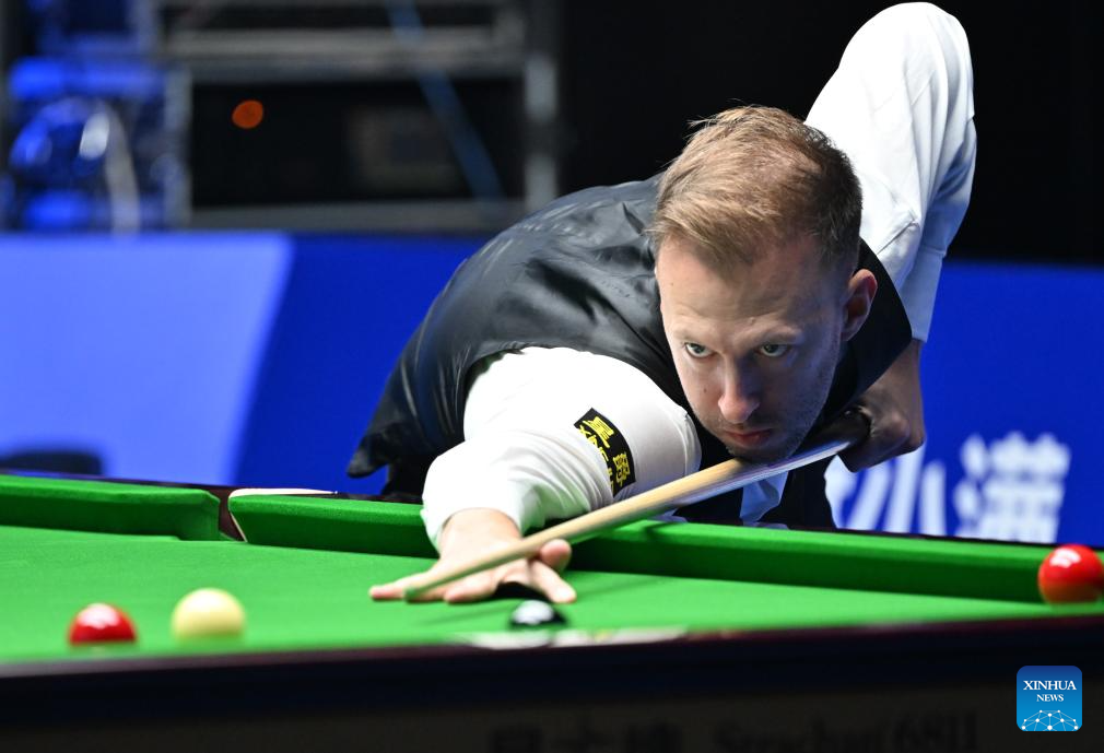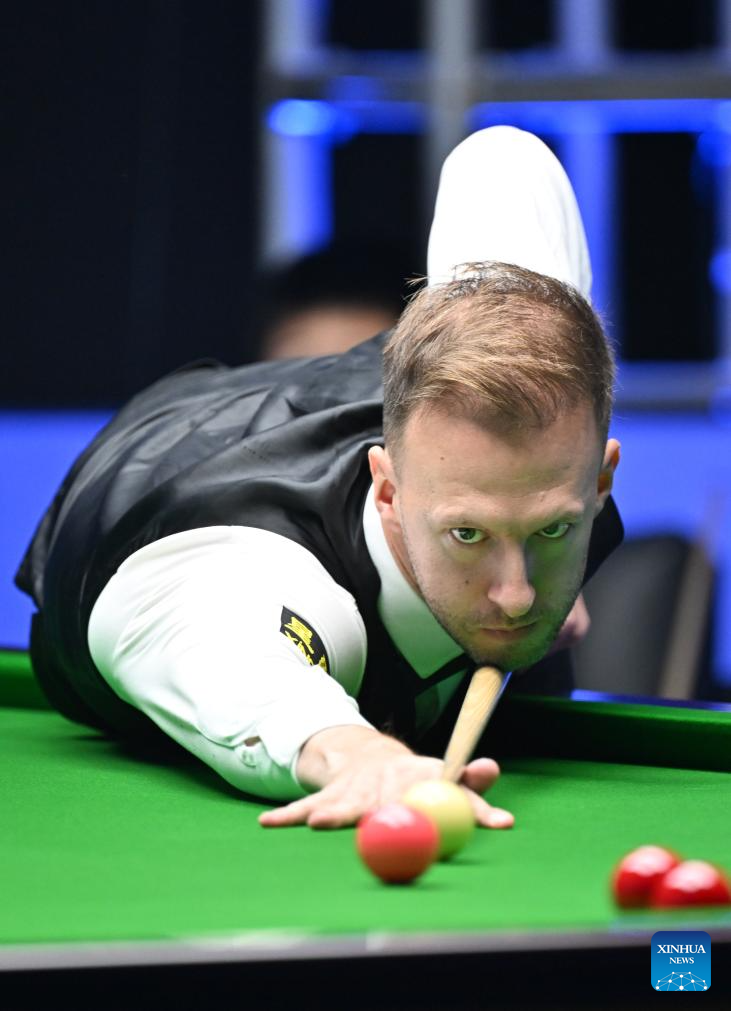 Judd Trump of England competes during the round 1 match between Wang Xinzhong of China and Judd Trump of England at World Snooker International Championship 2023 in north China's Tianjin Municipality, Nov. 5, 2023. (Xinhua/Li Ran)