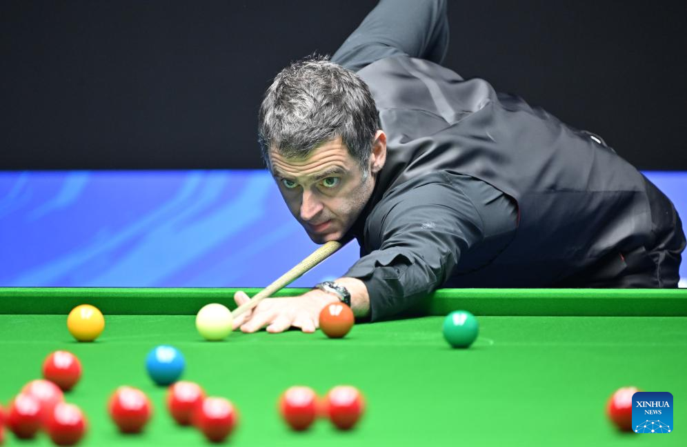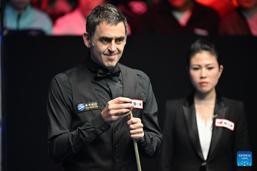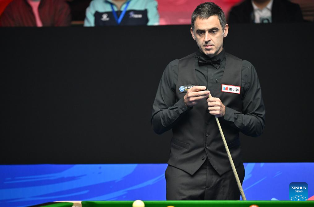 Ronnie O'Sullivan of England competes during the round 1 match between Ronnie O'Sullivan of England and Ken Doherty of Ireland at World Snooker International Championship 2023 in north China's Tianjin Municipality, Nov. 5, 2023. (Xinhua/Li Ran)