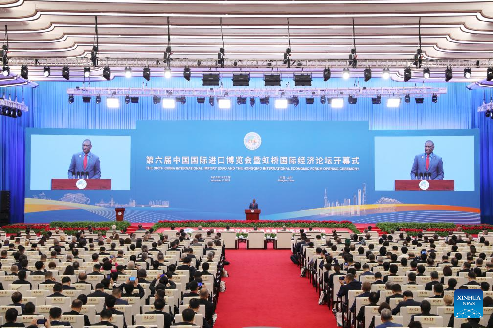 South African Deputy President Paul Mashatile addresses the opening ceremony of sixth China International Import Expo (CIIE) and the Hongqiao International Economic Forum in east China's Shanghai, Nov. 5, 2023. (Xinhua/Jin Liwang)