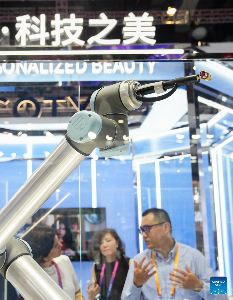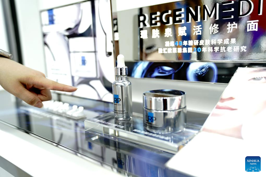 Photo taken on Nov. 5, 2023 shows L'Oreal's new products at the 6th China International Import Expo (CIIE) in east China's Shanghai. The 6th China International Import Expo kicked off here on Sunday, with many cutting-edge technologies and new products making their debuts at the event. (Xinhua/Zhang Jiansong)