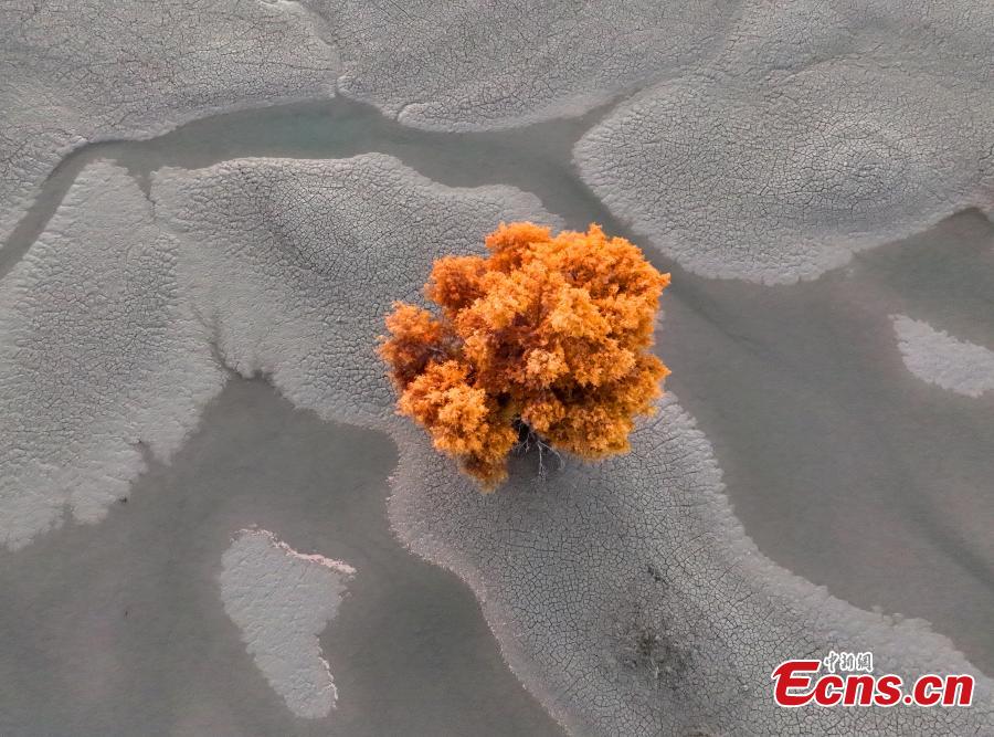 Stunning autumn scenery of desert poplar trees, also known as populus euphratica, at the Lop Nur National Wetland Park in Yuli County, Bayingolin Mongolian Autonomous Prefecture, northwest China's Xinjiang Uyghur Autonomous Region. (Photo/China News Service)