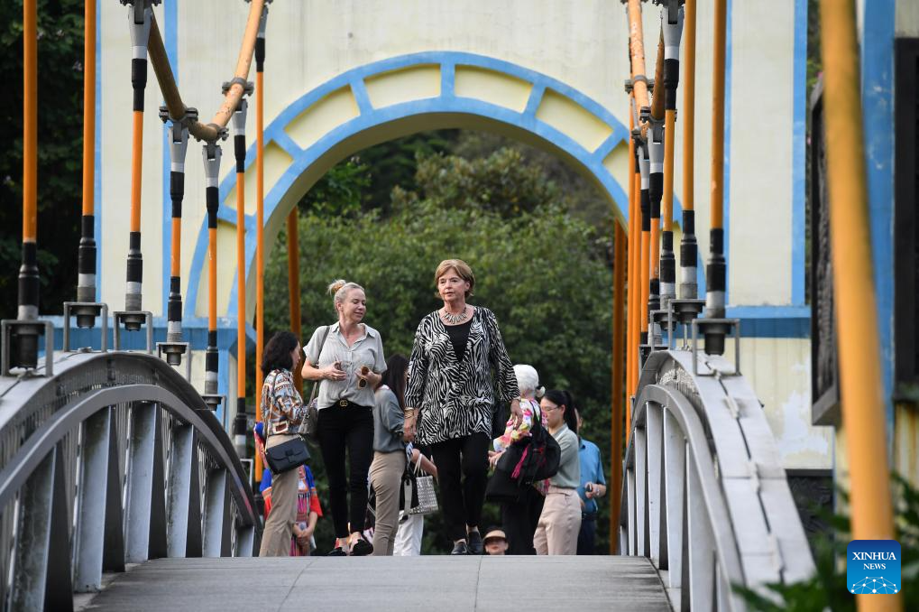 Delegation members visit a local park in Liuzhou, south China's Guangxi Zhuang Autonomous Region, Nov. 5, 2023. A delegation including Jeffrey Greene, chairman of the Sino-American Aviation Heritage Foundation, and Flying Tigers veterans and their descendants, visited Liuzhou on Sunday. (Xinhua/Lu Boan)