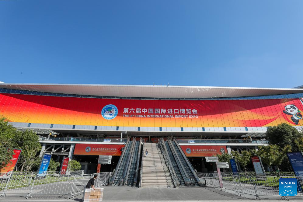 This photo taken on Nov. 2, 2023 shows the exterior view of the National Exhibition and Convention Center (Shanghai), the venue for the upcoming sixth China International Import Expo (CIIE), in Shanghai, east China. (Xinhua/Xin Mengchen)
